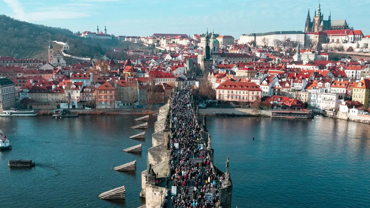 Salida en vuelo desde Valencia y llegada a la Ciudad de las Cien Torres. Tras un almuerzo de bienvenida, descubriremos el núcleo histórico (Patrimonio UNESCO): la Casa Municipal, la Torre de la Pólvora y la emblemática Plaza de la Ciudad Vieja con su Reloj Astronómico. El paseo culmina cruzando el histórico Puente de Carlos antes del alojamiento y la cena.